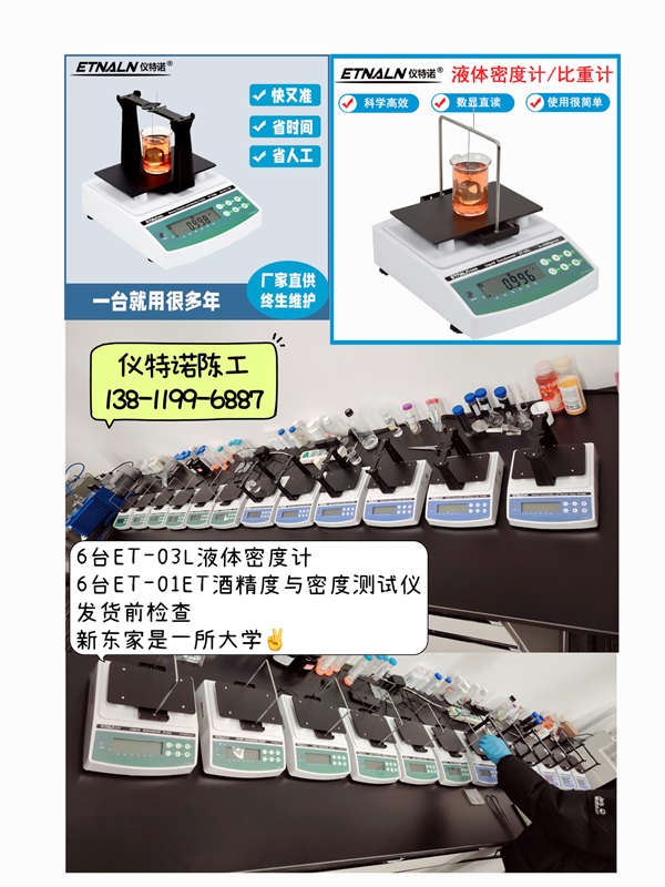 儀特諾6臺ET-03L液體密度計和6臺ET-01ET酒精度與密度測試儀奔赴湖南農(nóng)業(yè)大學(xué)。