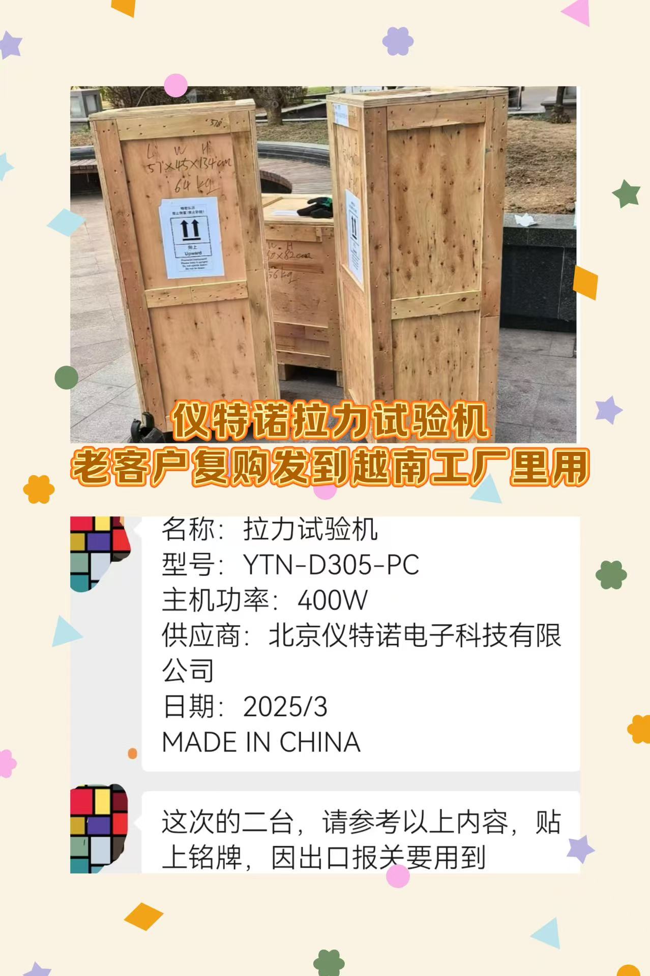 老朋友就是給力!再次復購2臺單柱拉力試驗機,發往越南工廠。感謝信任,我們一定用靠譜的機器和貼心的服務,讓您用得更放心!