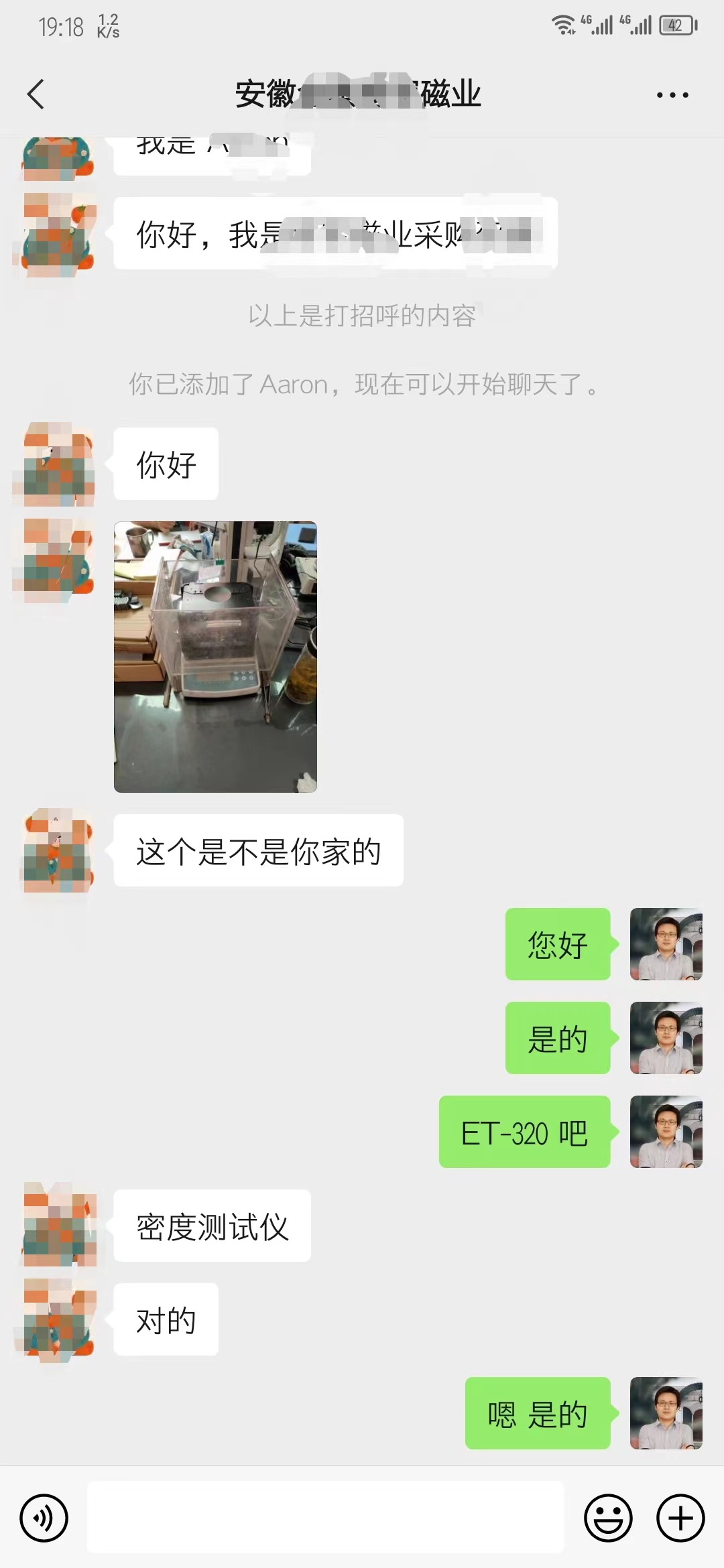 安徽老客戶,又來采購ET-320密度測(cè)試儀